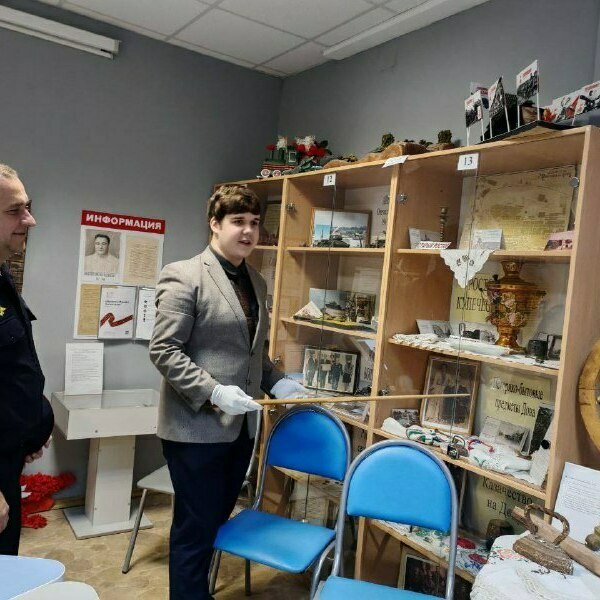 После мероприятия Александр Иванович Дзюба посетил школьный музей «Ратная Слава России». Экскурсоводы музея Герегиев Георгий и Ефремова Мария познакомили гостя с историей создания школьного музея, показали выставку, под названием «Герои нашего времени», а также экспозицию, посвященную Героям специальной военной операции.
