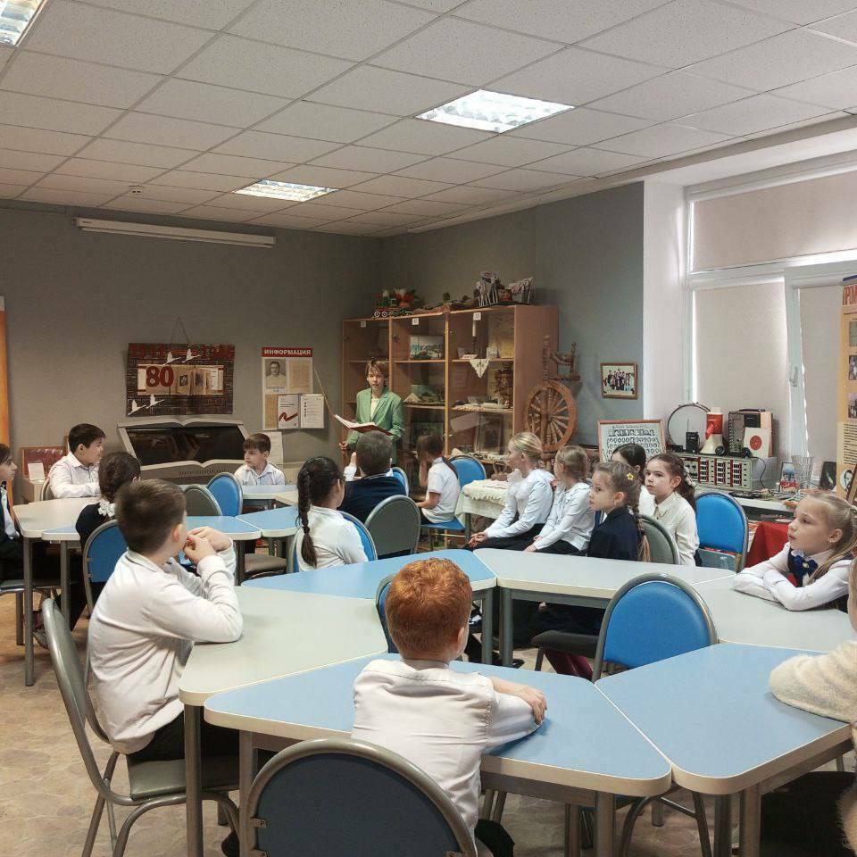 В дни школьных каникул для учеников младших классов школьный музей подготовил новые экскурсии. Сегодня, 28 октября, ребята 2-х и 3-х классов посетили музей гимназии 95. Для них провели экскурсию «Самый интересный экспонат музея» и познакомили с экспозицией «Школьные предметы периода СССР»