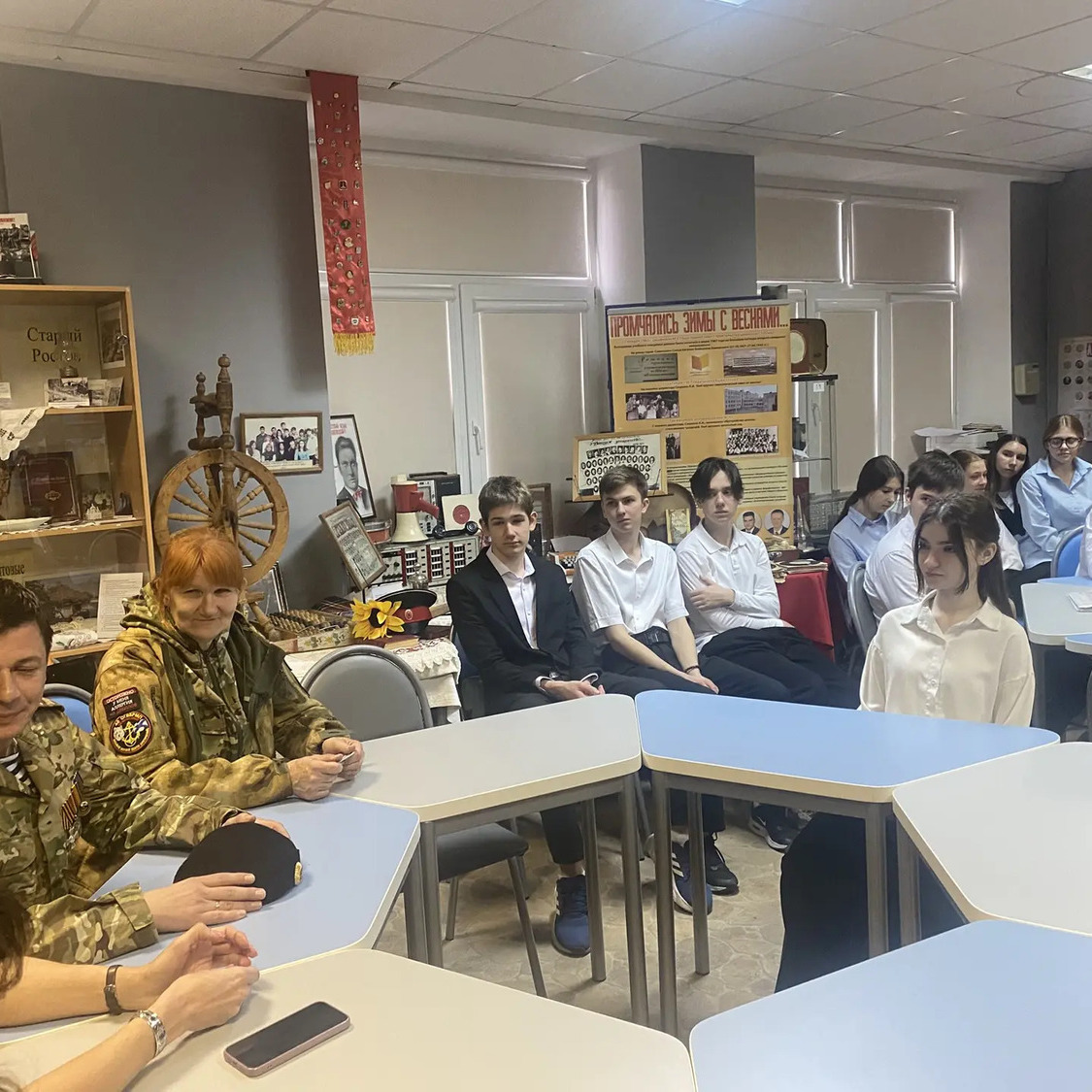 В конце мероприятия гости посетили школьный музей «Ратная Слава России». Активисты музея познакомили гостей с историей его создания, рассказали о выставке «Герои нашего времени», показали экспозицию, посвященную участникам специальной военной операции, а также экспозицию, посвященную Великой Отечественной воне.