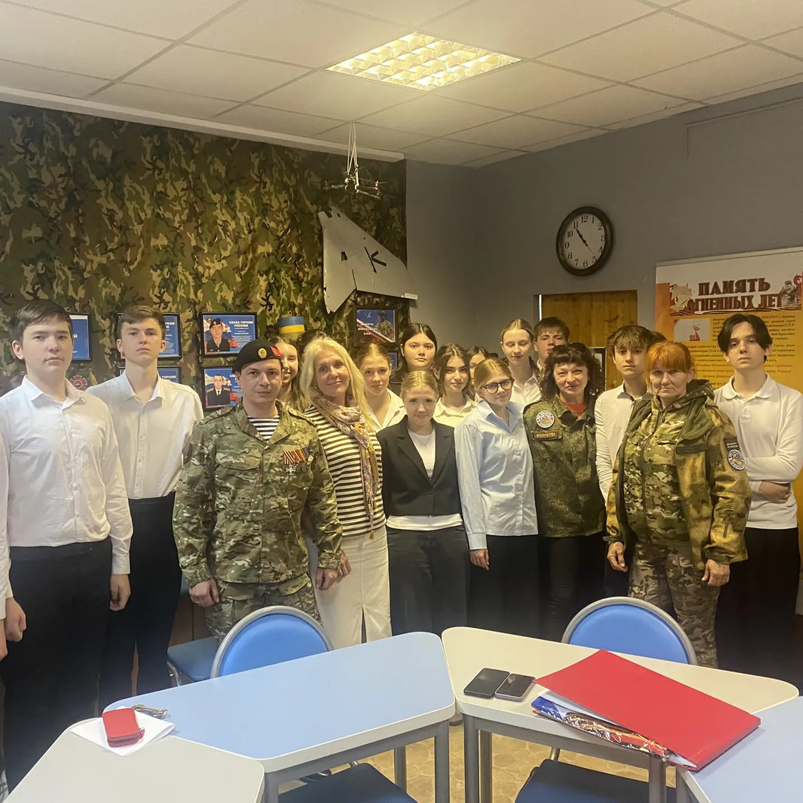 Сегодня, 6 октября, в музее гимназии №95 состоялась встреча с волонтером «Вежливый Тыл РФ» Апостол Анастасией Сергеевной, которая рассказала ребятам о том, что ее организация занимается помощью бойцам на СВО. Анастасия Сергеевна передала в дар школьному музею трофеи ВСУ от Добровольческой Разведывательно-штурмовой бригады «Север V» разведка БПЛА: * подсумок на бронежилет для запасного магазина (Украинский) * противогаз с позывным "Динго" (Украинский) * БПЛА (FPV Украинский). * Для школьного музея это очень ценные экспонаты, особую благодарность выражаем Разведовательно-штурмовой бригады «Север V» разведка БПЛА за Украинский FPV БПЛА, который пополнит экспозицию, посвященную СВО. * В конце мероприятия для ребят была проведена тематическая экскурсия, посвященная СВО «Герои нашего времени». *