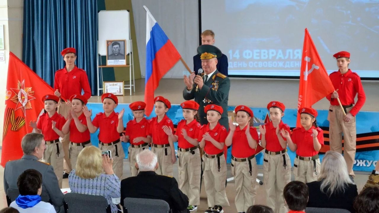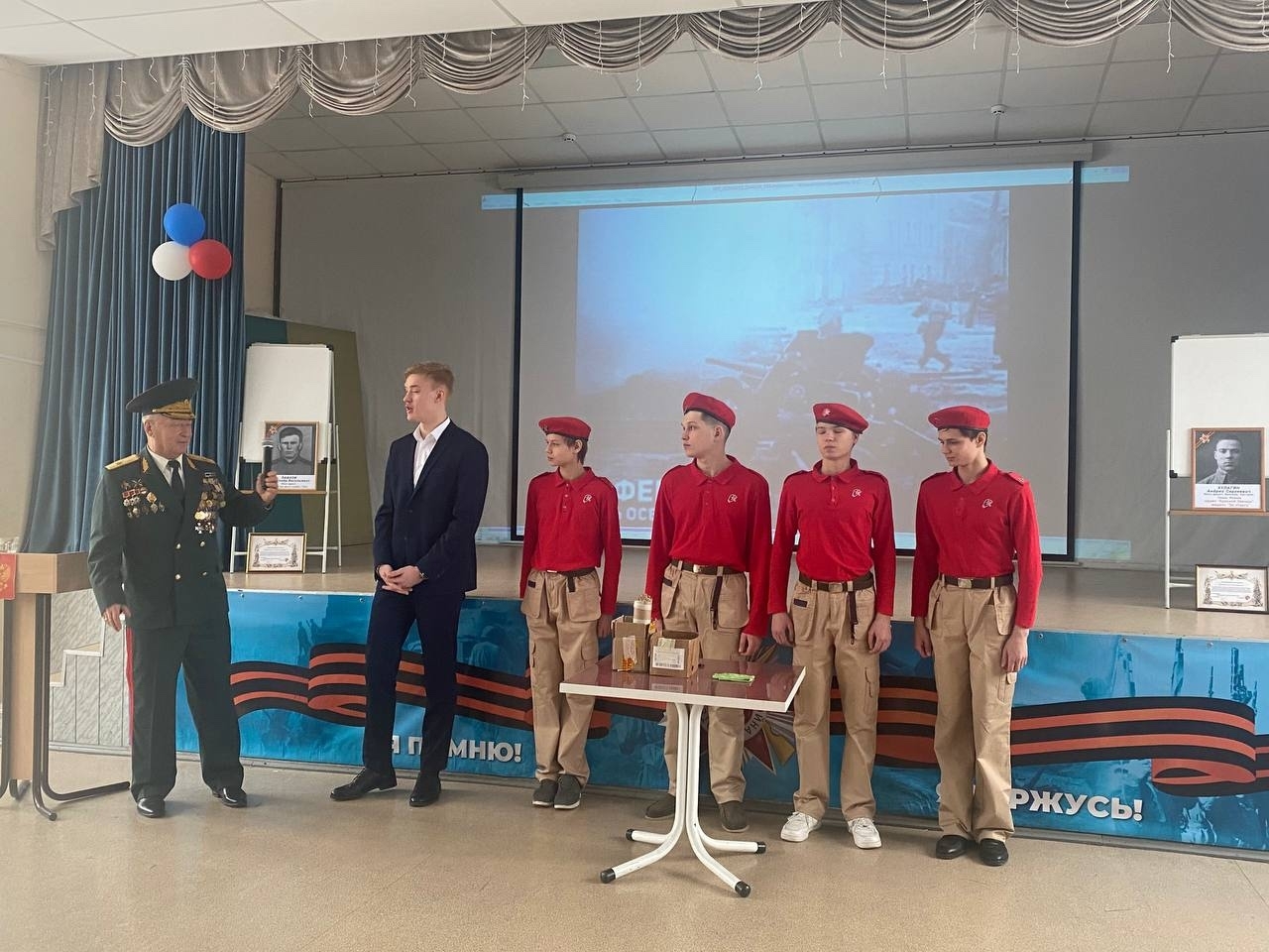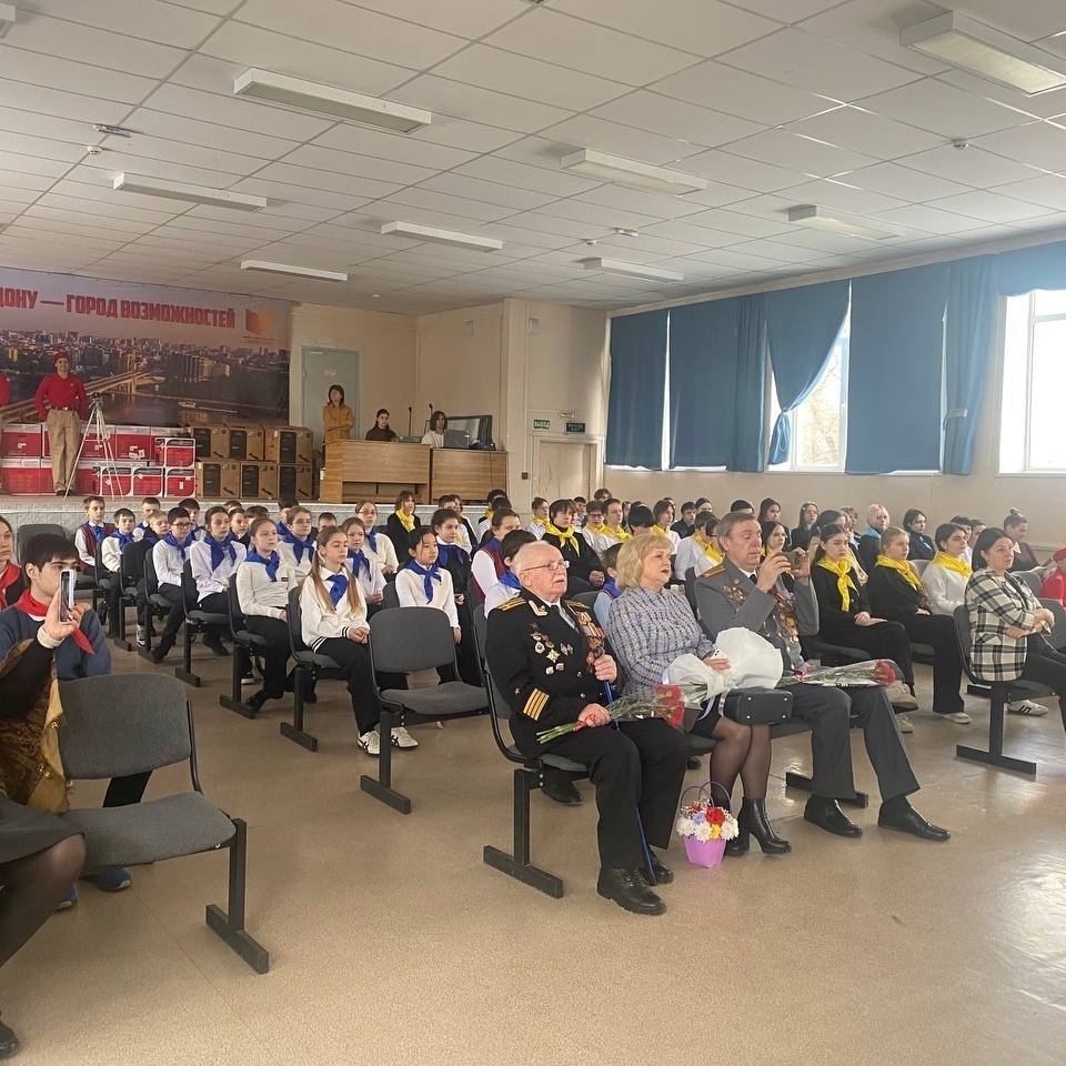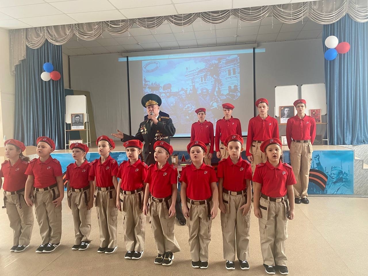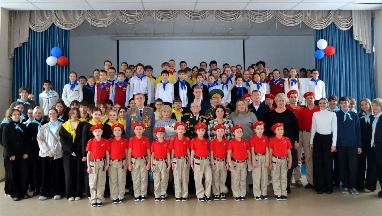 В МБОУ «Гимназия №95» прошло мероприятие, посвященное Году защитника Отечества и 80-летия Великой Победы, в котором приняли участие почетные гости - руководитель партии «Единая Россия» Советского района Левин Леонид Сергеевич, подполковник в отставке Горохов Владимир Михайлович и старший лейтенант, действующий участник СВО.