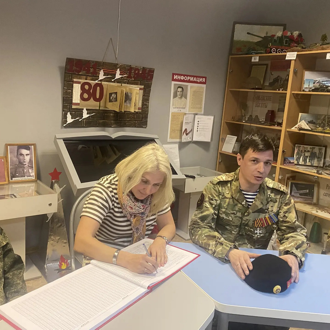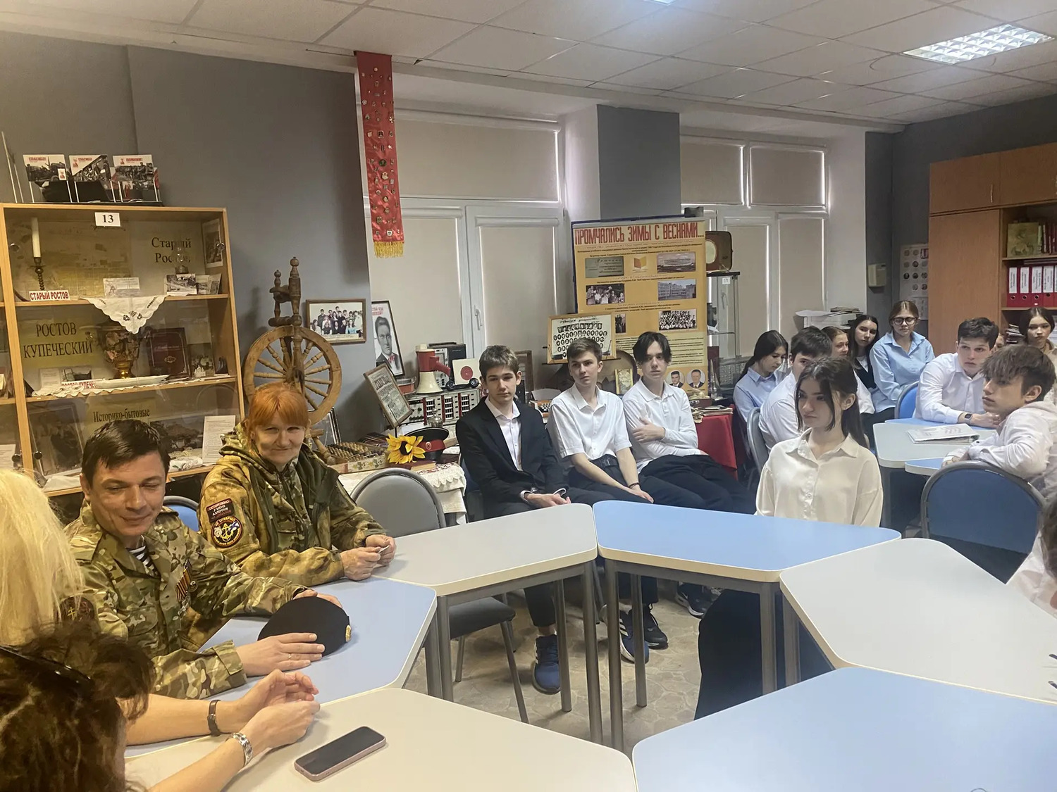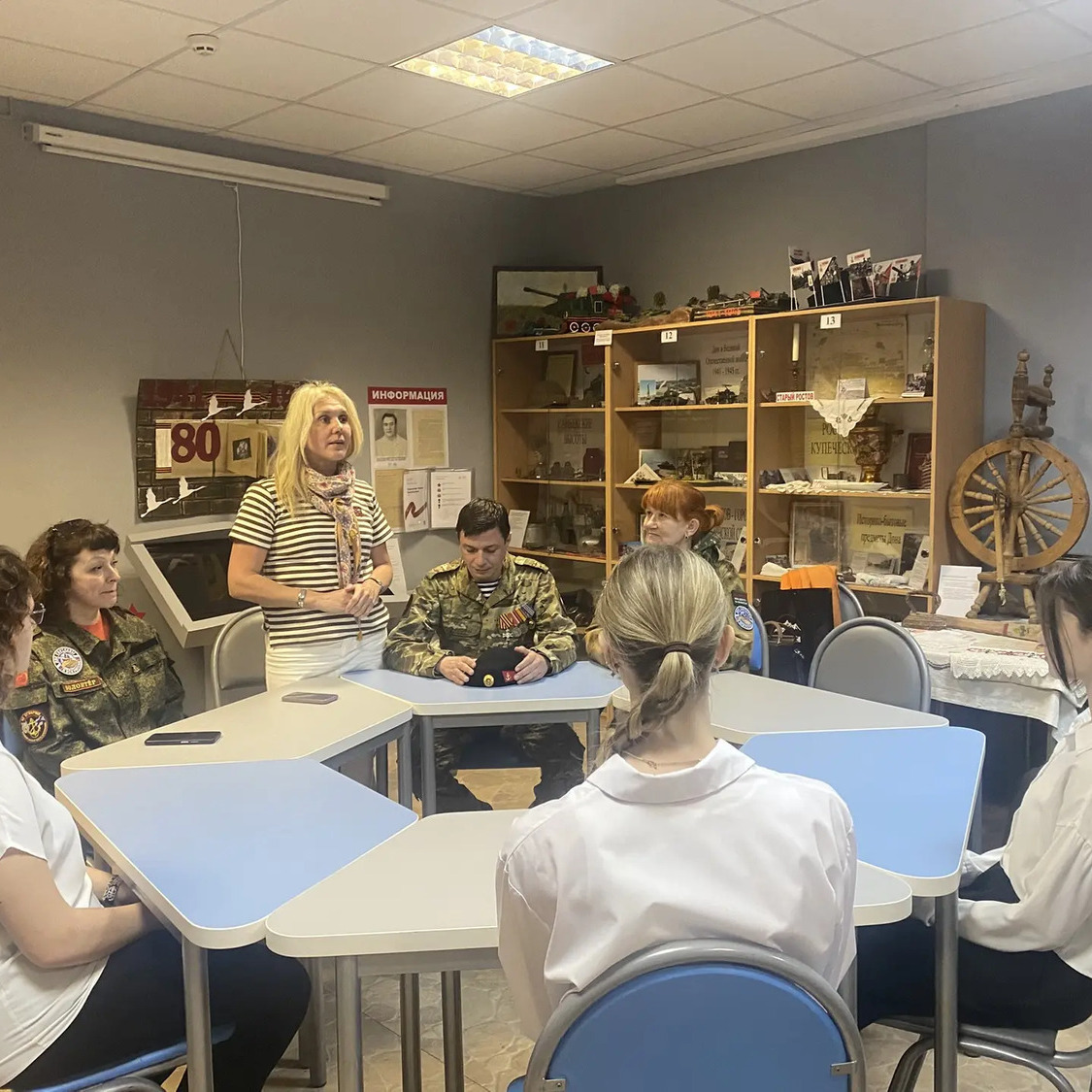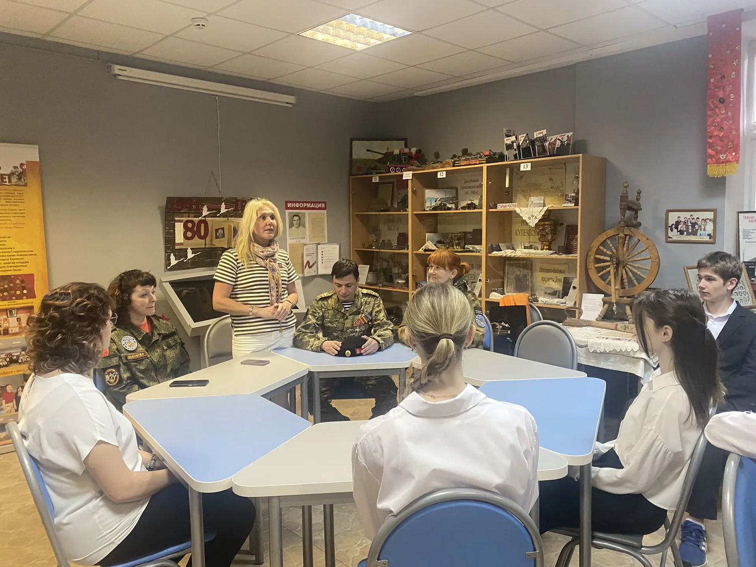 22 мая в музее «Ратная Слава России» МБОУ «Гимназия N°95» состоялась встреча с участником СВО старшиной танковой роты Ильёй Сергеевичем Блохиным, в ходе которой музею был передан танковый шлем солдата СВО. Илья Сергеевич рассказал историю этого экспоната, который вскоре будет включён в экспозицию, посвящённую участникам и ветеранам Специальной Военной Операции. Актив музея, в свою очередь, провёл почётному гостю и классу, в котором обучается его дочь, обзорную экскурсию. Встреча состоялась в приятной атмосфере. Актив музея продолжит собирать информацию о новых исторических событиях, связанных с нашей Родиной, ведь только память и бережное хранение достоверных знаний может противостоять уничтожающей силе времени!