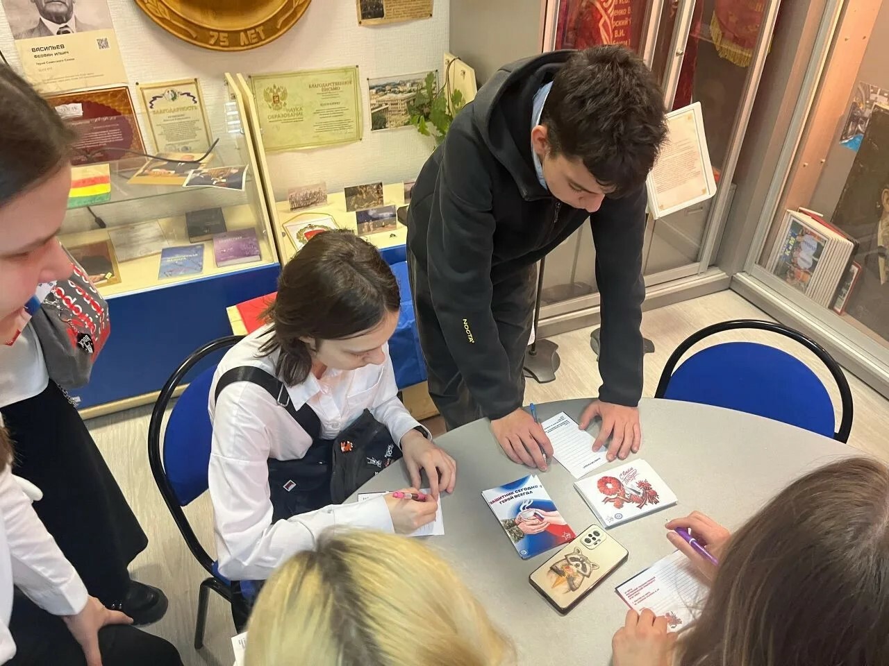 25 апреля в музее гимназии 95 прошло мероприятие, посвящённое Дню Победы. Актив музея и ученики 9-10 классов приняли участие в акции «Письмо Победы». Ребята написали письма, в которых поздравили участников спецоперации с наступающим праздником и пожелали им успехов и Победы. На мероприятии присутствовала телекомпания Дон ТР.