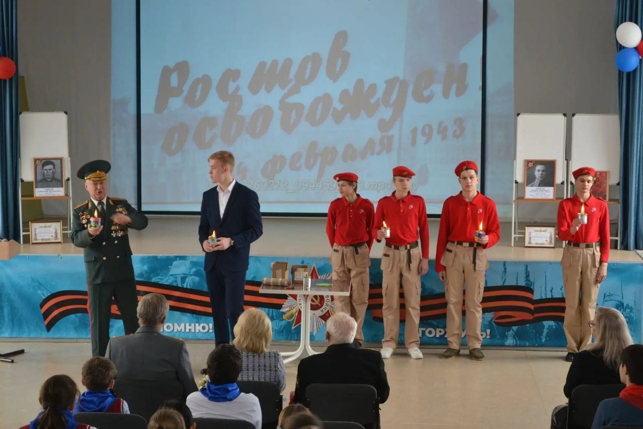 12 февраля, в гимназии 95 и в школьном музее «Ратная Слава России» прошёл "Урок памяти и мужества ", посвящённый 83-ей годовщине освобождения г.Ростова-на-Дону от немецко-фашистских захватчиков! На мероприятии присутствовали: подполковник Сноп Олег Евгеньевич, Кавалер Ордена Мужества, участник боевых действий на Северном Кавказе, Председатель Совета ветеранов Советского района ; Куртубашев Владимир Петрович капитан 2 ранга, кавалер ордена Красного знамени, ветеран боевых действий в Анголе, Володина Наталья Владиславовна, ветеран труда, Первый заместитель Председателя Совета ветеранов Советского района. Генерал-майор, учитель ОБЗР Кулагин Александр Александрович напомнил учащимся о том, что 14 февраля 1943 года — день окончательного освобождения Ростова-на-Дону от немецко-фашистских захватчиков. Войска 28-й армии под командованием генерала Василия Герасименко после семидневных ожесточенных боев полностью очистили город от оккупантов, находившихся там с 24 июля 1942 года (более 200 дней). Ученикам гимназии напомнили, что основную роль сыграла 28-я армия Южного фронта при поддержке 51-й армии, а также освобождение южной части города — Батайска, начавшееся 8 февраля 1943 года. Сложность боев заключалась в том , что город был важен как «ворота Кавказа» и транспортный узел, поэтому фашисты удерживали его изо всех сил. Бои шли в условиях почти полного окружения противника. Учащимся напомнили также о том, что во время оккупации гитлеровцы расстреляли около 40 тысяч мирных жителей (27 тысяч в Змиевской балке) и угнали на принудительные работы 53 тысячи ростовчан. Ростов-на-Дону входит в десятку наиболее пострадавших городов СССР и носит звание «Город воинской славы». Освобождение Ростова стало ключевым этапом в изгнании врага с Кавказа и открыло путь к освобождению Донбасса.