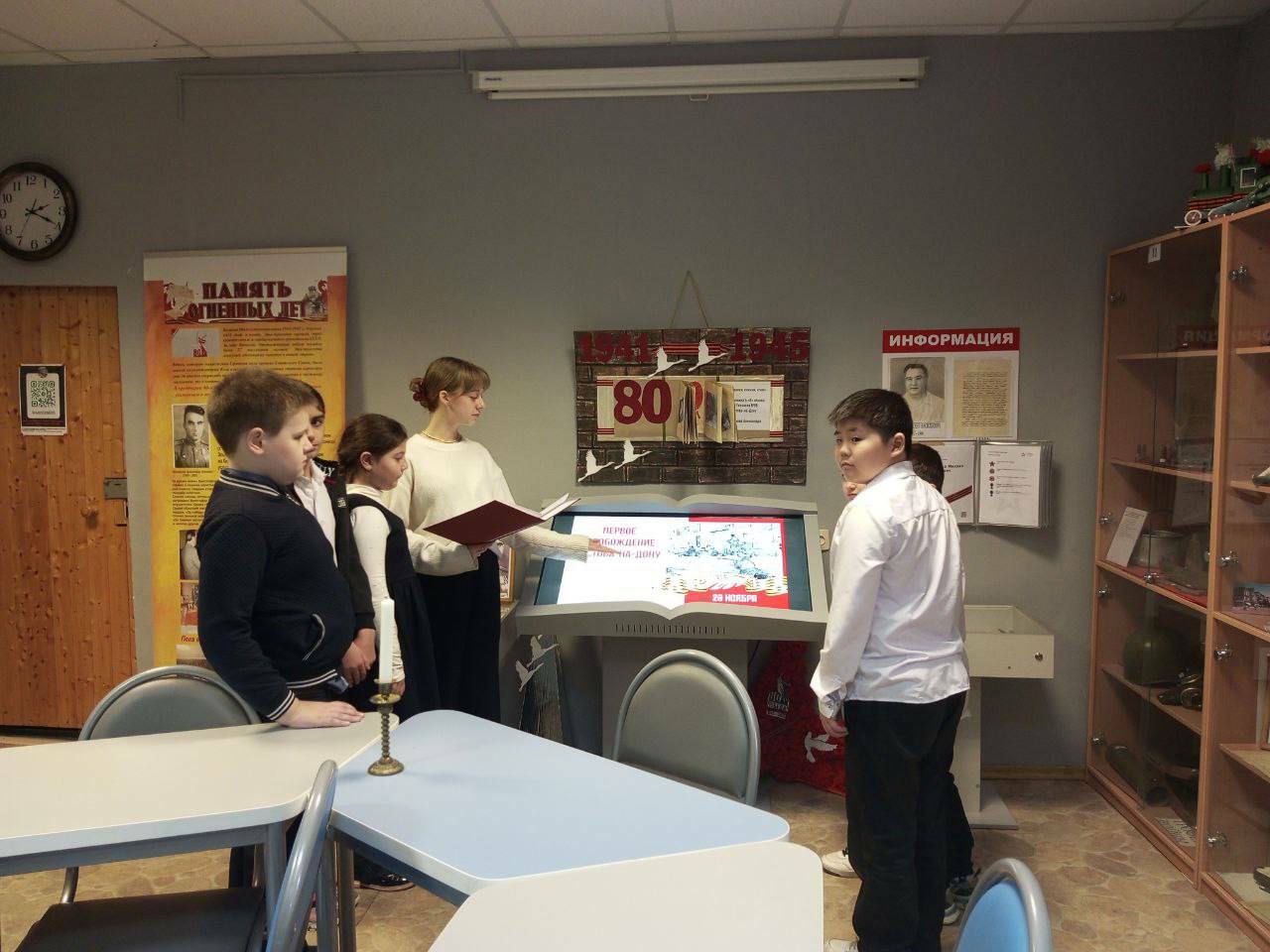 В честь Дня освобождения Ростова-на-Дону, 28 ноября, активисты школьного музея «Ратная Слава России» провели мероприятие и экскурсию! Ребята рассказали трогательную историю о смелом мальчике по имени Витя Черевичкин, ставшем символом мужества и стойкости нашего города!