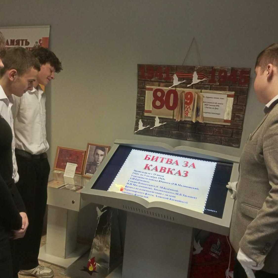 9 октября в России отмечали День воинской славы – День разгрома советскими войсками немецко-фашистских войск в битве за Кавказ (1943 год). 9 и 10 октября, для учеников 5-х и 8-х классов, в музее гимназии 95 проведено мероприятие и тематическая экскурсия, посвященные Дню воинской славы России. Ребятам рассказали, что Битва за Кавказ, длившаяся с 25 июля 1942 года по 9 октября 1943 года, стала одним из наиболее продолжительных и кровопролитных сражений Великой Отечественной войны. Ребята также узнали о том, что захват Кавказа являлся одной из приоритетных целей в стратегических планах гитлеровской Германии.. Основным итогом Битвы стало изгнание с Кавказа немецко-фашистских войск и как следствие – ликвидация угрозы потери крупнейшей базы энергетических и продовольственных ресурсов и предотвращение возможного вступления Турции в войну на стороне фашистской Германии. Битва за Кавказ завершилась 9 октября 1943 года освобождением Таманского полуострова. Потери германских войск только за время наступательных операций советских войск составили свыше 280 тысяч человек, более семи тысяч орудий и минометов, свыше 1,3 тысяч танков и около двух тысяч самолетов. Потери Красной армии за весь период битвы за Кавказ составили около 940 тысяч убитыми и ранеными. Ребята узнали, что более 850 000 участников той тяжелейшей битвы были награждены медалью «За оборону Кавказа», учреждённой в 1944 году. Их мужество и стойкость, вера и любовь к Родине помогли выстоять в той тяжелейшей Битве, а подвиг их останется бессмертным в веках.