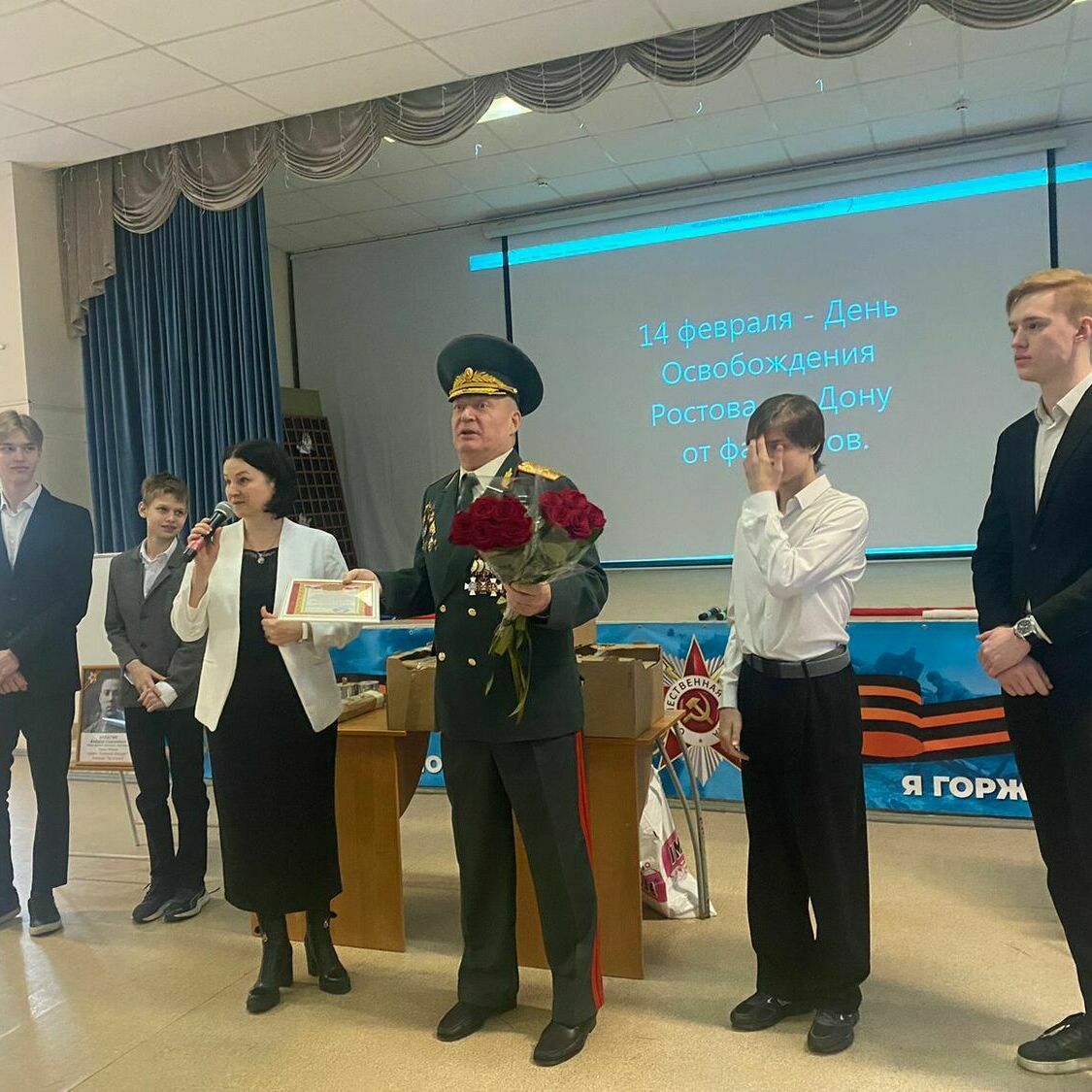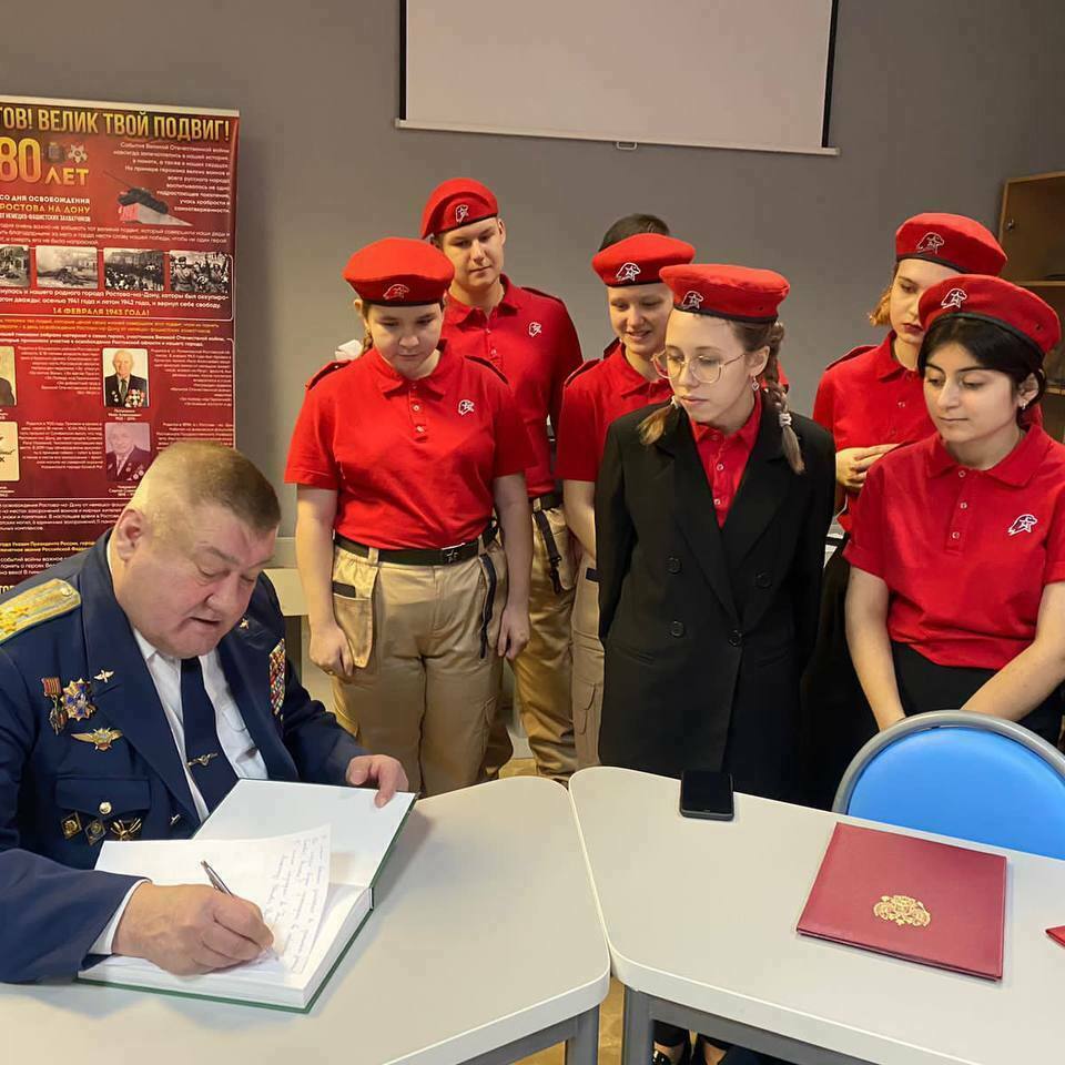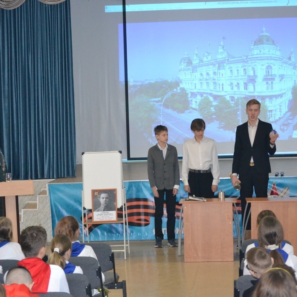 10 февраля в гимназии прошел Урок Мужества, посвященный 82 годовщине освобождения Ростова-на-Дону от немецко-фашистских захватчиков. На мероприятии присутствовал генерал-майор в отставке Кулагин Александр Александрович. Александр Александрович напомнил ребятам о том, что 14 февраля 1943 года бойцы Красной армии при поддержке кавалерии казаков и местных партизан смогли выбить навсегда из донской столицы гитлеровскую нечисть. Ребята еще раз вспомнили, что ключевым шагом в освобождении Ростова-на-Дону стала победа советских войск в Сталинградской битве 2 февраля. Эта дата стала поворотным моментом во всей Великой Отечественной войне, положив начало коренному перелому и переходу стратегической инициативы Красной армии на южном участке фронта. Но особенно это событие важно для Ростова, ведь освобождение донской столицы – это прямое следствие разгрома фашистов под Сталинградом. Ростов-на-Дону был освобождён спустя всего 12 дней после окончательного завершения битвы на Волге. В конце мероприятия Александр Александрович посетил школьный музей, где активисты провели обзорную экскурсию, познакомили с новыми экспозициями, посвященные 80-летию Победы в Великой Отечественной войне. В конце Александр Александрович оставил отзыв и свои пожелания в книге отзывов!