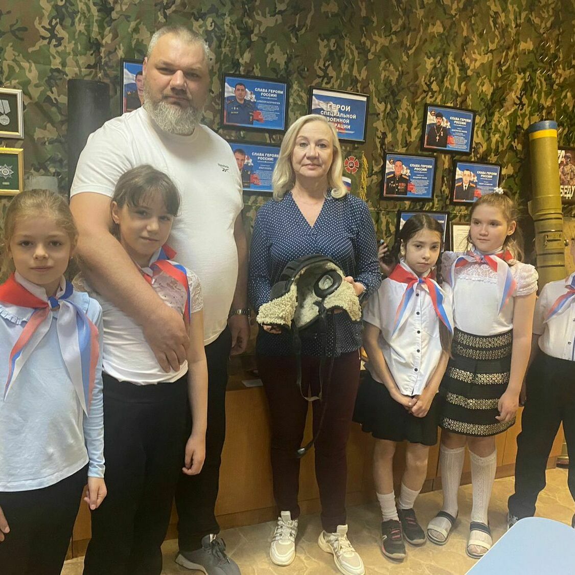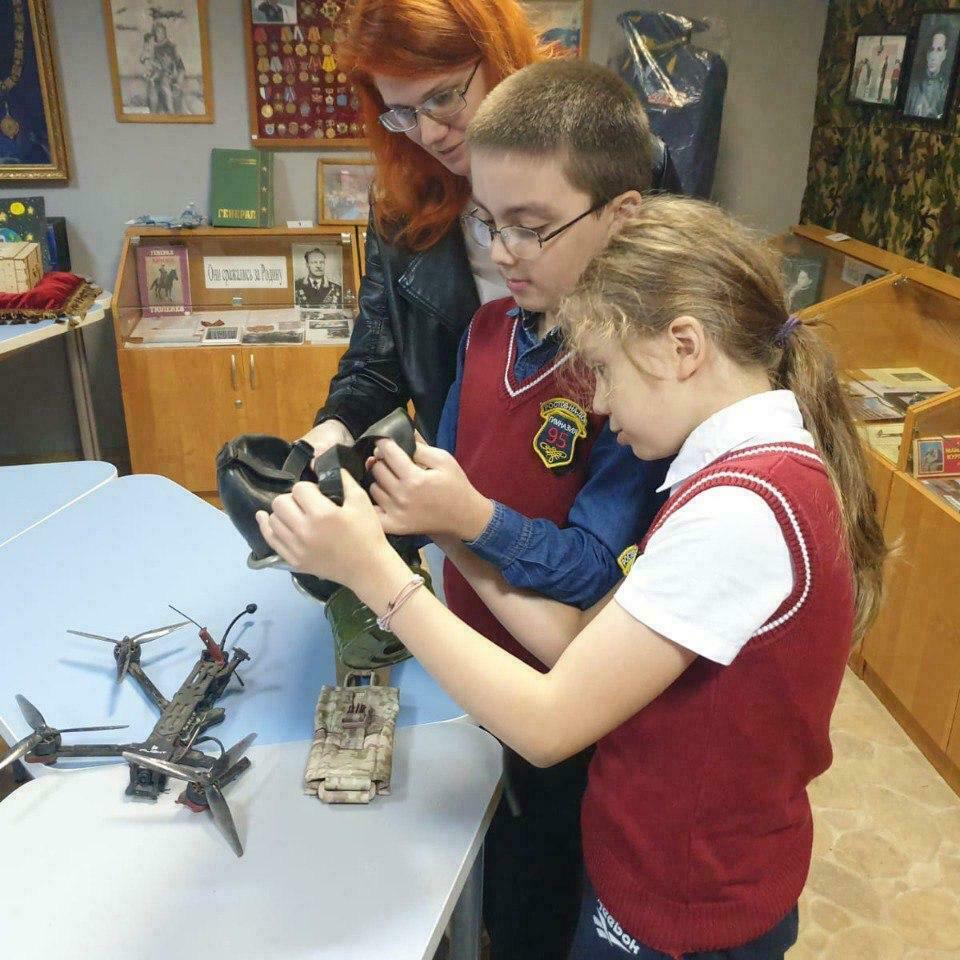 Сегодня, 6 октября, в музее гимназии №95 состоялась встреча с волонтером «Вежливый Тыл РФ» Апостол Анастасией Сергеевной, которая рассказала ребятам о том, что ее организация занимается помощью бойцам на СВО. Анастасия Сергеевна передала в дар школьному музею трофеи ВСУ от Добровольческой Разведывательно-штурмовой бригады «Север V» разведка БПЛА: * подсумок на бронежилет для запасного магазина (Украинский) * противогаз с позывным "Динго" (Украинский) * БПЛА (FPV Украинский). * Для школьного музея это очень ценные экспонаты, особую благодарность выражаем Разведовательно-штурмовой бригады «Север V» разведка БПЛА за Украинский FPV БПЛА, который пополнит экспозицию, посвященную СВО. * В конце мероприятия для ребят была проведена тематическая экскурсия, посвященная СВО «Герои нашего времени». *