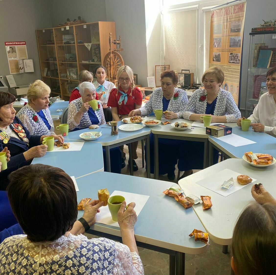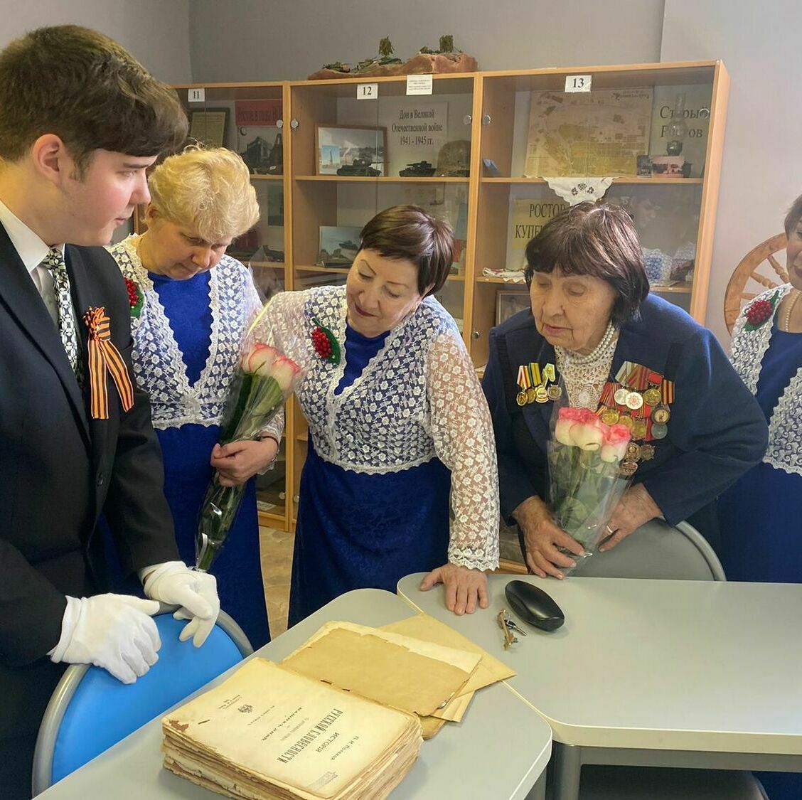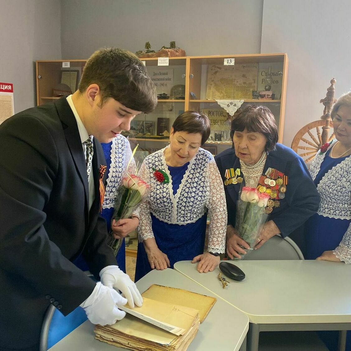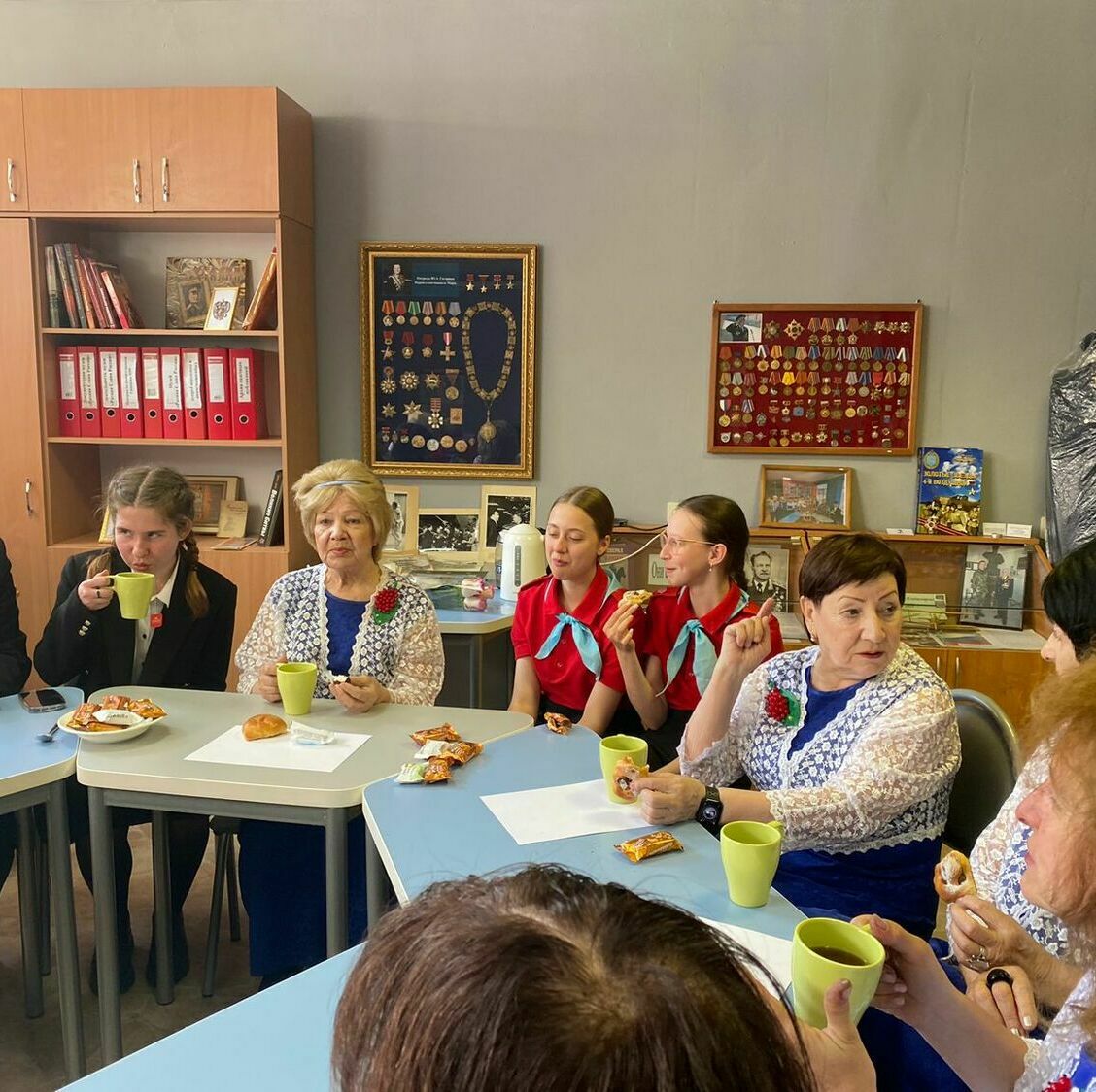6 мая, в преддверии праздника Дня Победы в МБОУ «Гимназия N°95» состоялось мероприятие в рамках урока Мужества, посвящённое 79 годовщине Победы Советского народа над фашистской Германией. На мероприятии присутствовали гости: ансамбль Совета Ветеранов Советского района «Рябинушка», руководитель Широкова Галина Никитична. На торжественном концерте ансамбль исполнил песни военного времени, а работник тыла, обладатель множества государственных наград, Шпот Ираида Николаевна прочитала стихотворение фронтового поэта. Затем гости посетили школьный музей «Ратная Слава России» им. Виктора Владимировича Гришина. Экскурсоводы музея Герегиев Георгий и Ефремова Мария провели обзорную экскурсию, познакомив гостей с разнообразием экспозиций музея и подробно рассказав о каждом экспонате. Заключительным событием стало чаепитие, сопровождаемое творческой беседой с участниками ансамбля, а также прослушивание пластинок в уютной атмосфере школьного музея.