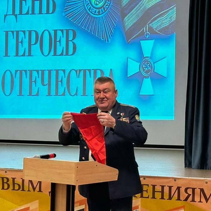 В честь Дня Героя Отечества ученики старших классов приняли участие в мероприятии, на котором присутствовал российский офицер-вертолётчик, участник боевых действий и спасательных операций, Герой Российской Федерации - Александр Иванович Дзюба.