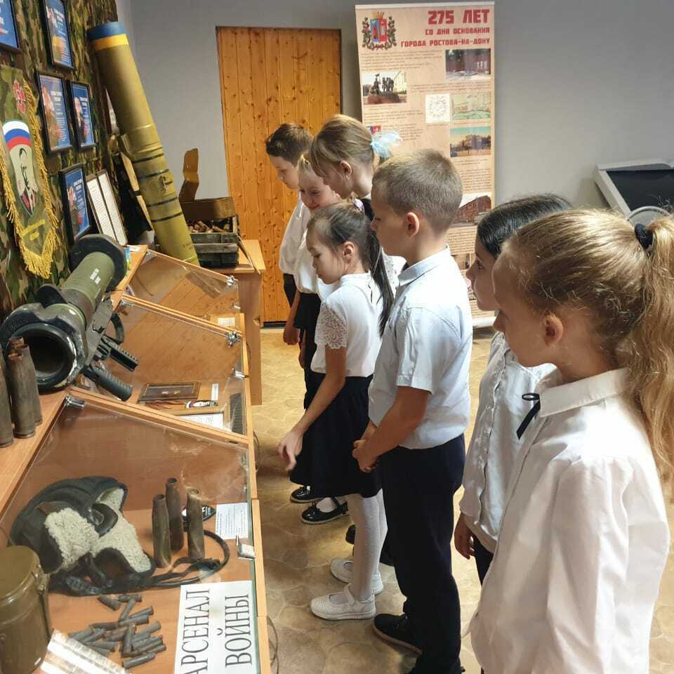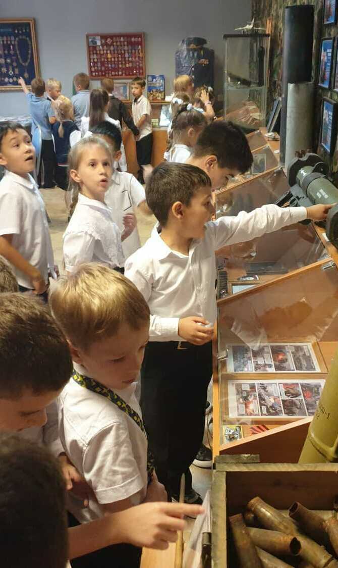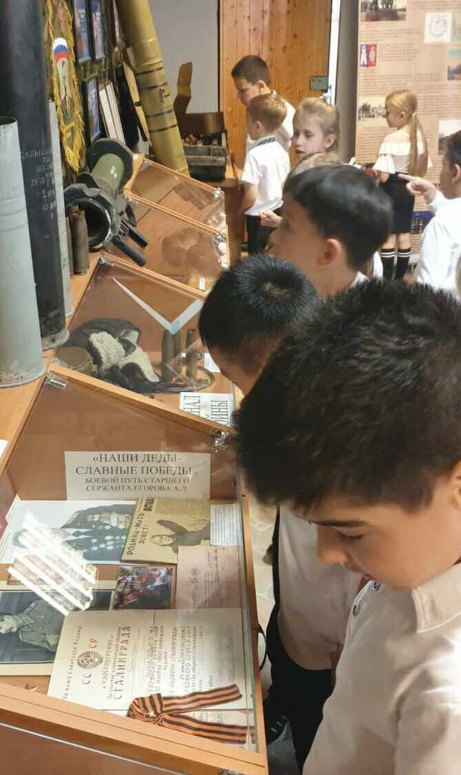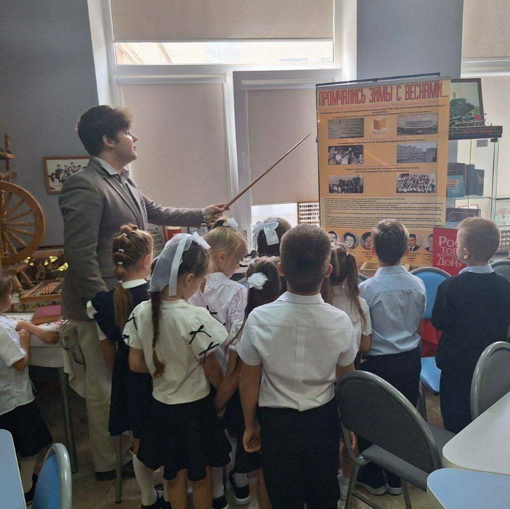 Музей Гимназии №95 «Ратная Слава России» начал учебный год обзорными экскурсиями для первоклассников и знакомством самых юных учеников с историей создания музея. Музей посетили ученики 1А, 1Б и 1В класса. Ребята познакомились с экспозициями, посвящёнными Специальной Военной Операции, лётчику-асу генерал-майору Виктору Владимировичу Гришину, быту Донского казачества, истории школы, ВОВ и др. На интерактивной панели были показаны фотографии времён Великой Отечественной Войны, оживлённые с помощью современных технологий. Первоклассники с неподдельным интересом слушали экскурсии, активно отвечали на вопросы экскурсовода, делились впечатлениями, рассматривали каждый экспонат и пообещали обязательно прийти снова в школьный музей!