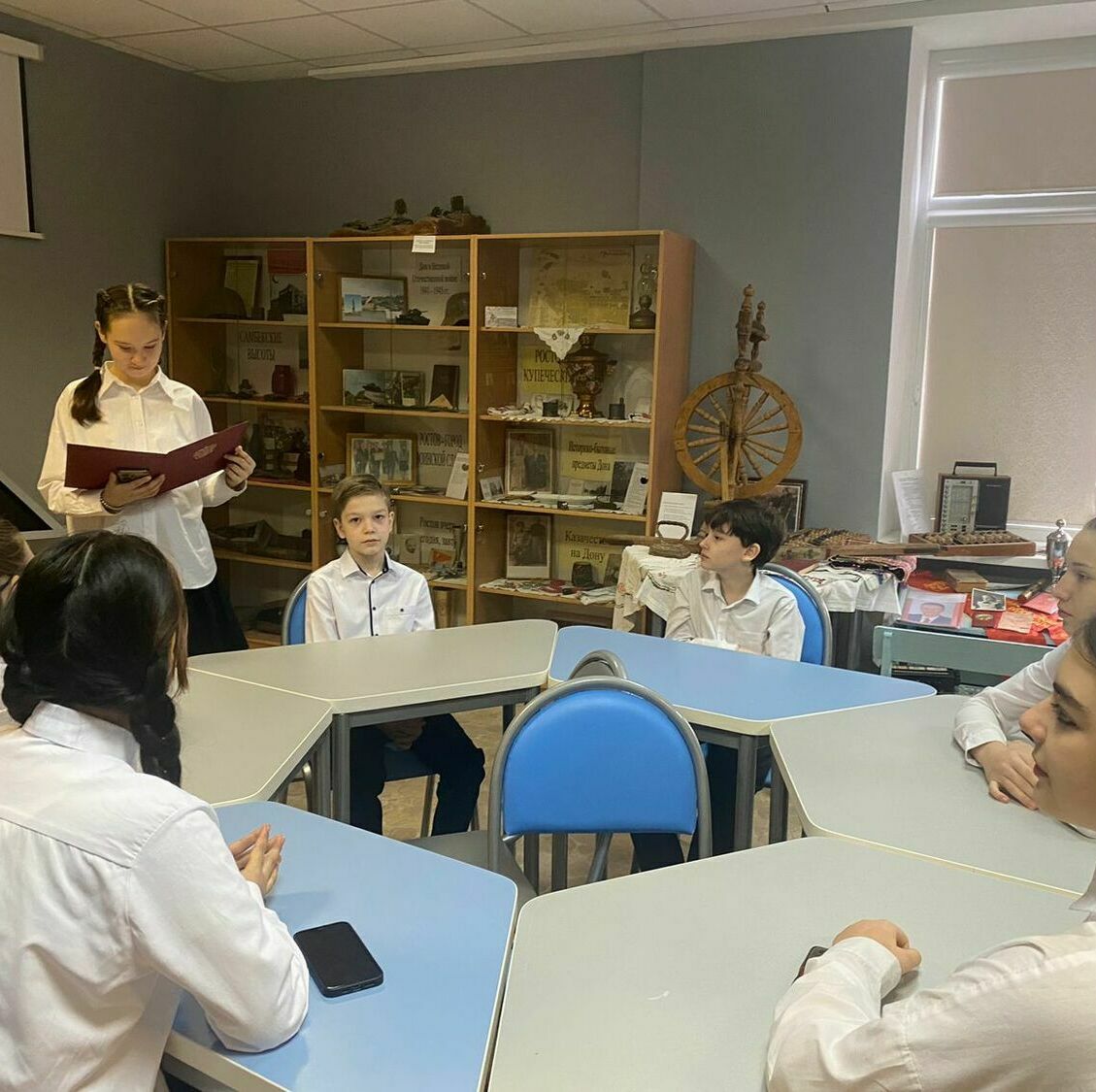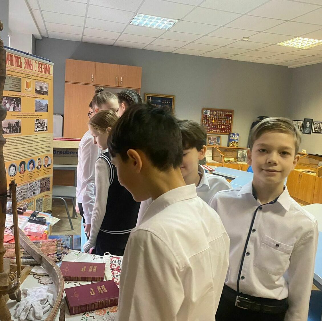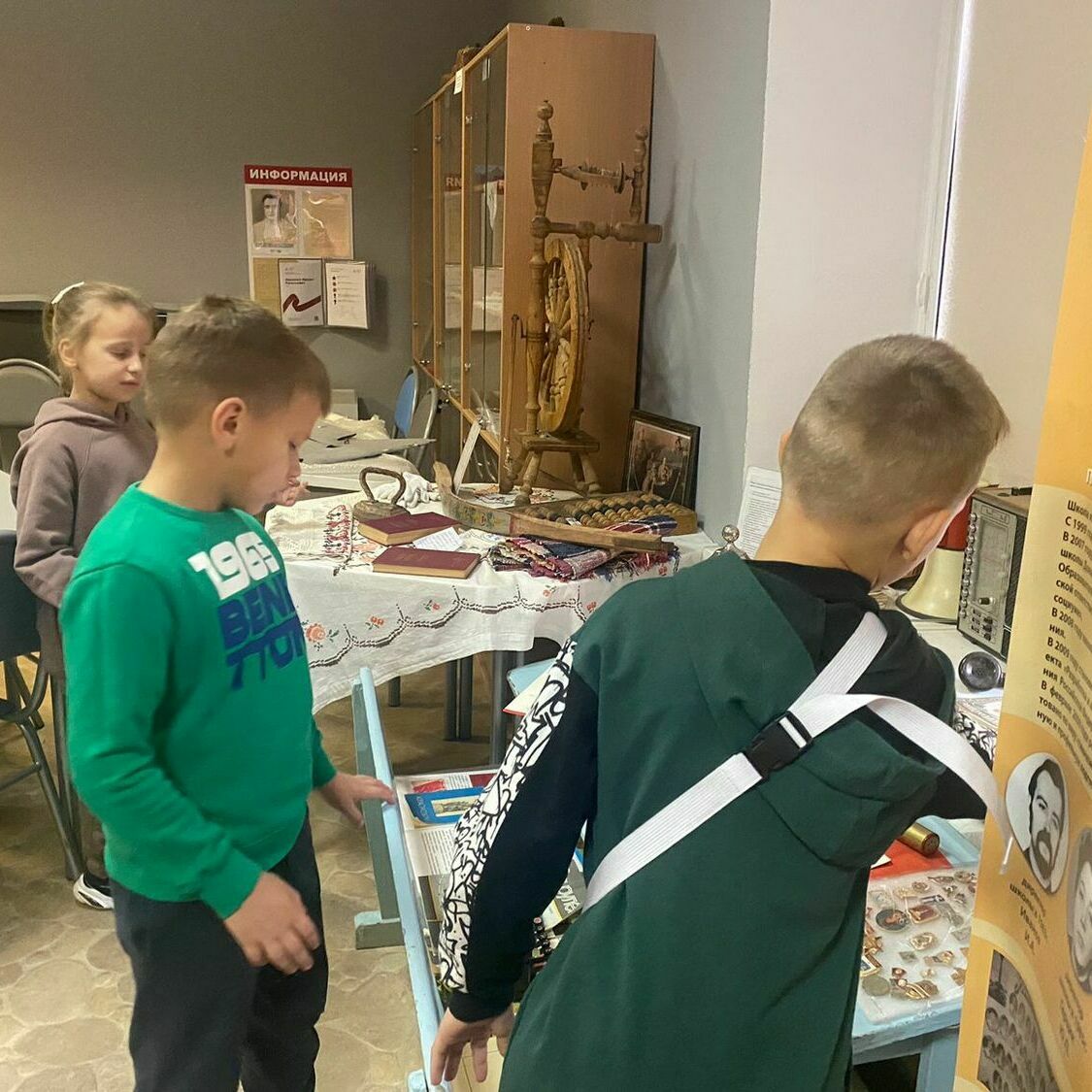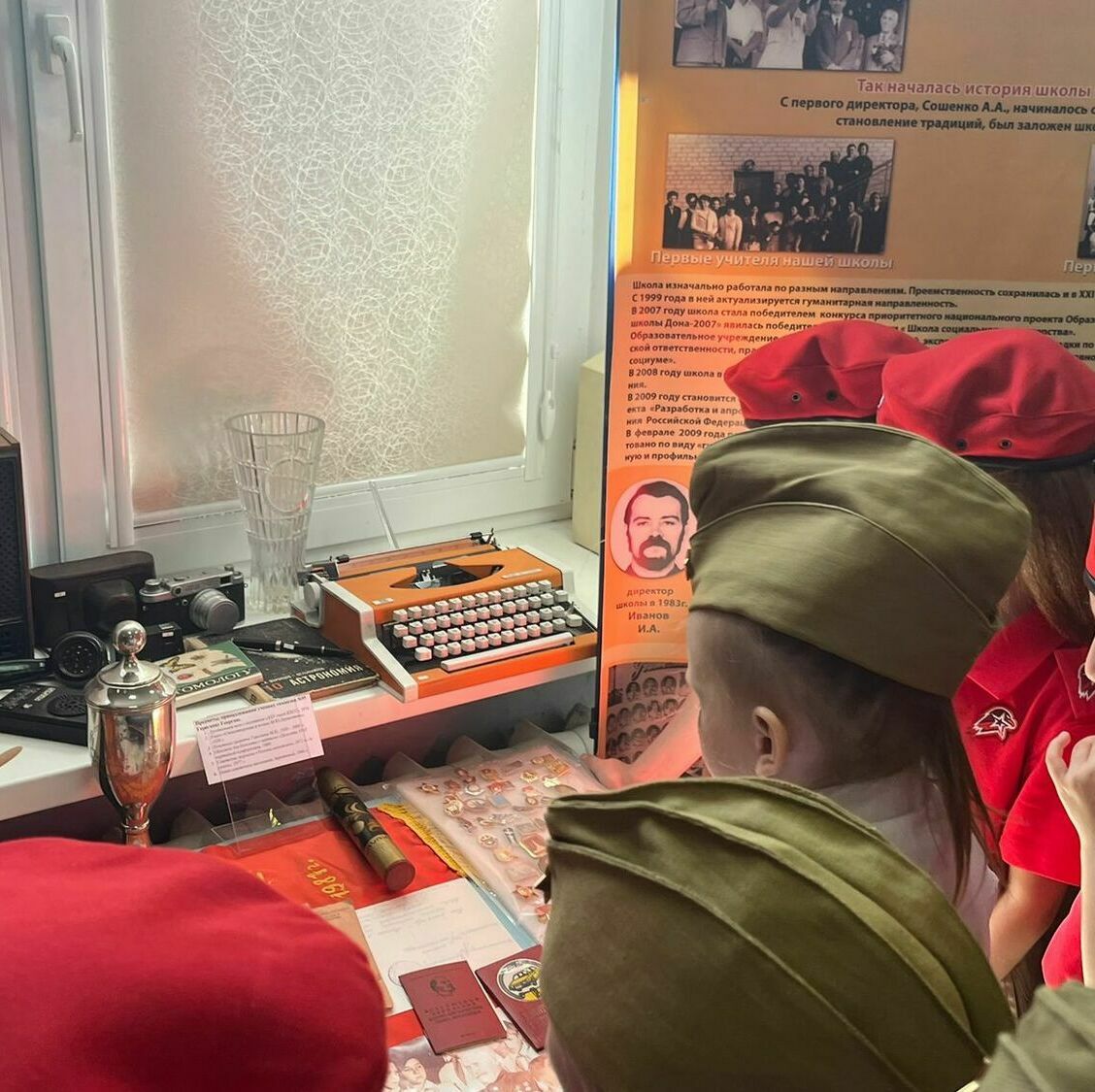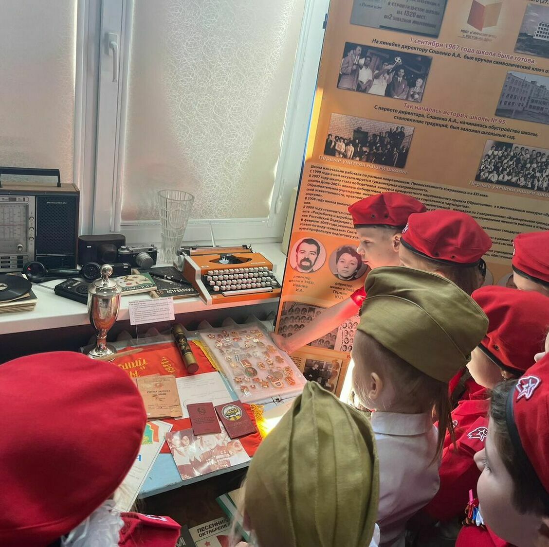 Затем ребята окунулись в атмосферу советского периода, с любопытством изучая экспозицию музея. Они видели личные вещи комсомольцев, документы, фотографии, значки – всё то, что помогло им представить жизнь советских граждан. В этот момент история оживала на их глазах, наполняясь реальными историями и подвигами.