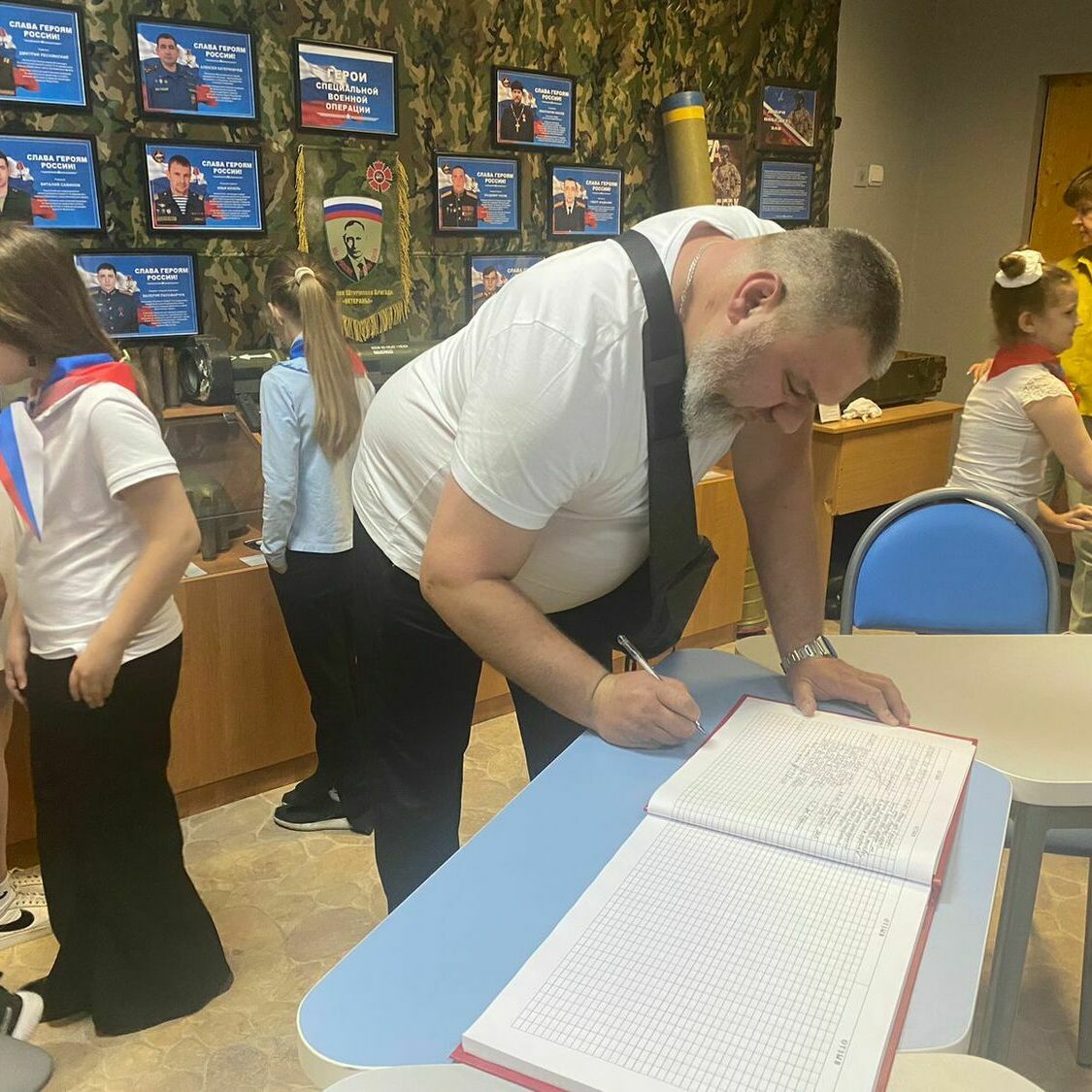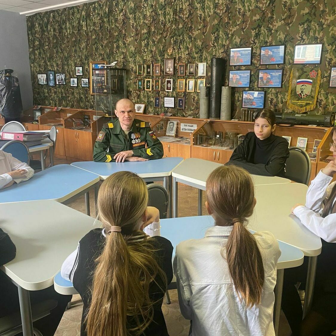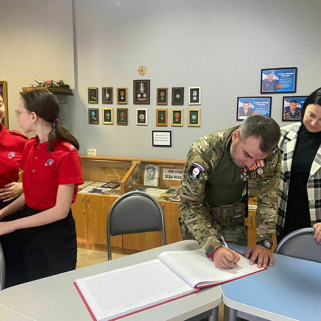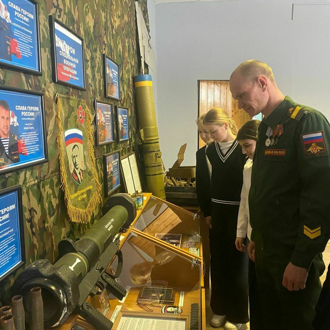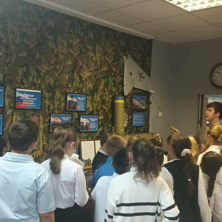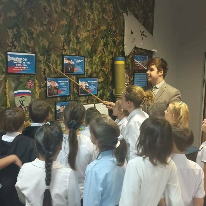 В конце мероприятия гости посетили школьный музей «Ратная Слава России». Активисты музея познакомили гостей с историей его создания, рассказали о выставке «Герои нашего времени», показали экспозицию, посвященную участникам специальной военной операции, а также экспозицию, посвященную Великой Отечественной воне.