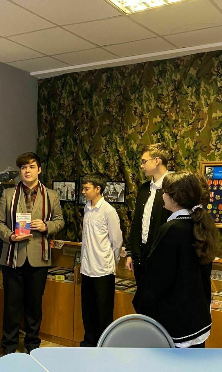 Сегодня, 12 декабря, на базе школьного музея прошло мероприятие , посвященное Дню Конституции. Выпускник гимназии и экс-председатель актива школьного музея Герегиев Георгий рассказал ученикам 9 в класса о том, что в России 12 декабря отмечается День Конституции. Праздник, посвященный Основному закону страны, существовал еще в период СССР. Главный нормативный правовой акт страны был принят всенародным голосованием 12 декабря 1993 года. Позже, 19 сентября 1994 года, указом президента РФ того периода Бориса Ельцина, этот день был объявлен государственным праздником. Ребятам также рассказали о том, что на создание нынешней Конституции России ушло более трех с половиной лет. Ее разработка началась в июне 1990 года, а итоговый вариант был принят 12 декабря 1993 года.
