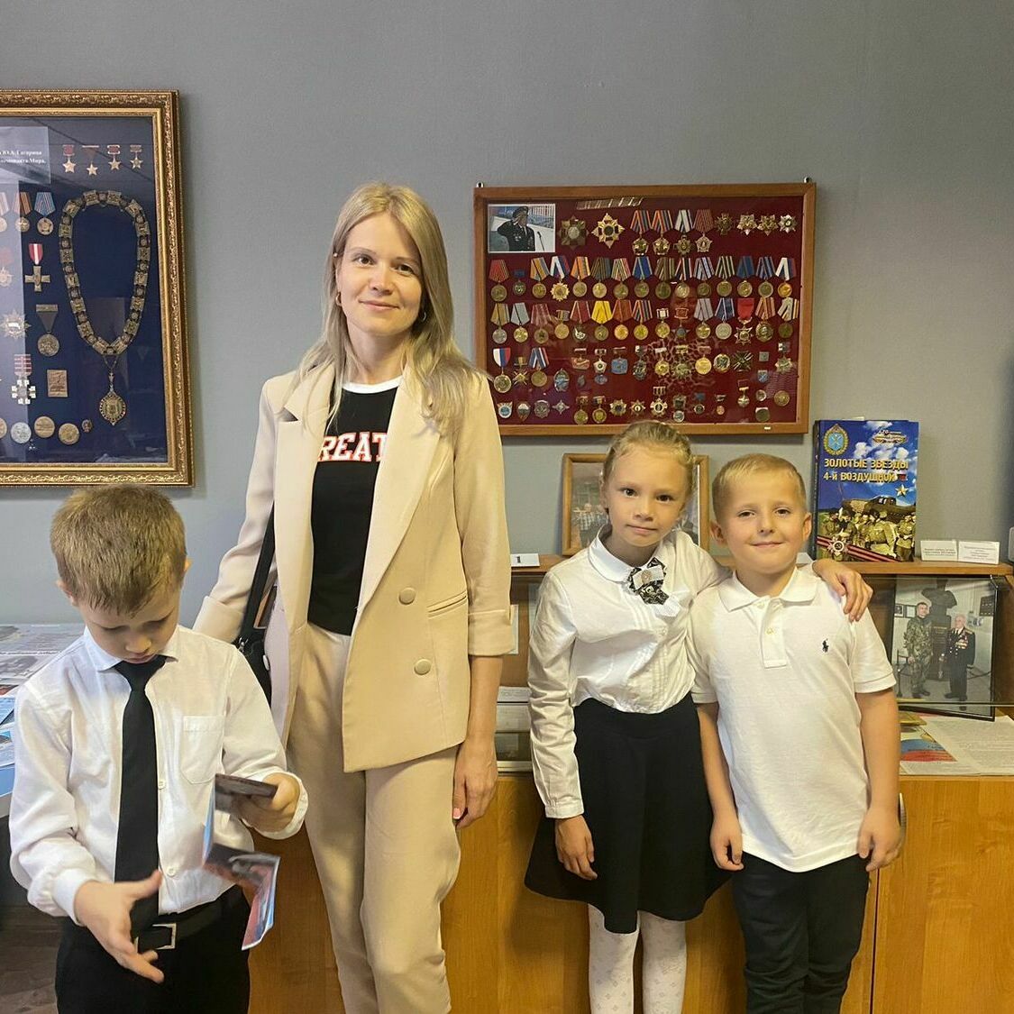 16 октября, в рамках патриотического воспитания, учащиеся 2 А класса с классным руководителем, советником директора и активистами «Движения первых», посетили музей гимназии «Ратная Слава России». В ходе мероприятия ребята познакомились с экспозициями, посвященными Великой Отечественной войне, биографии летчика-аса генерал-майора Виктора Владимировича Гришина и Специальной Военной Операции. Все участники экскурсии с неподдельным интересом слушали экскурсовода, отвечали на вопросы и захотели обязательно снова посетить школьный музей!