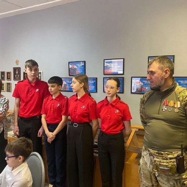 26 декабря в ходе акции «Мы с Вами», учащиеся передали видео поздравление и приветственные слова, а также гуманитарную помощь добровольцам Отдельной Разведовательной Бригады «Ветераны» Добровольческого Корпуса ВС РФ. Участник СВО Финк Алексей Викторович, начальник штаба бригады передал в дар музею отличительный знак отдельной Штурмовой Бригады «Ветераны» и оставил пожелания в книге отзывов школьного музея. 26 декабря в музее проведено мероприятие в рамках акции Движения «Ветераны России», в котором приняли участие ученики начальных классов. «Мы с Вами», передали приветственные слова, а также гуманитарную помощь добровольцам Отдельной Разведовательной Бригады «Ветераны» Добровольческого Корпуса ВС РФ. На мероприятии присутствовал гость, участник СВО Финк Алексей Викторович, который рассказал ребятам, что на СВО он с августа 2022, прошел путь от рядового бойца до начальника штаба бригады. Ребята с интересом слушали Алексея Викторовича, задавали вопросы. Алексей Викторович передал в дар музею отличительный знак отдельной Штурмовой Бригады «Ветераны» и оставил пожелания в книге отзывов школьного музея.