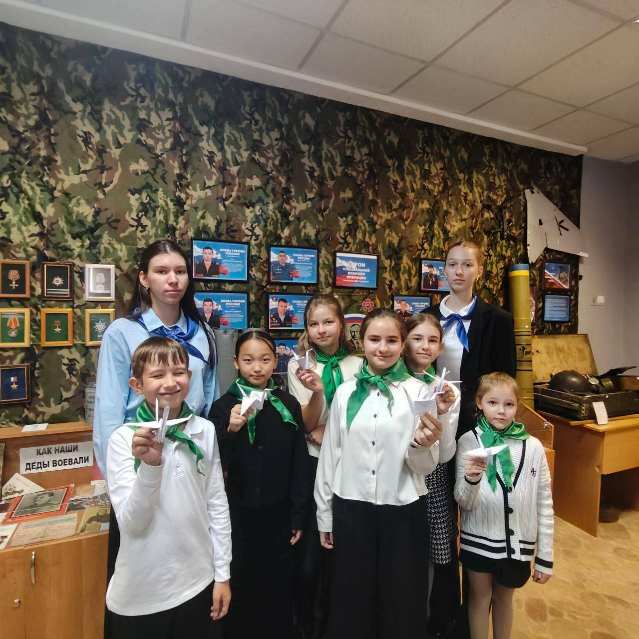 23 октября, в музее гимназии прошло мероприятие, посвященное Дню белых журавлей! ☝️Хранитель музейных ценностей рассказал участникам (ученикам младших классов, вожатым и волонтерам) о истории праздника, подвиге выпускника гимназии Алексеева Сергея Вячеславовича, героически погибшего в бою на территории Чеченской республики и награжденного посмертно "ОРДЕНОМ МУЖЕСТВА". Было прочитано стихотворение «Журавли» Расула Гамзатова. 🤲🤝Ребята подарили музею фигуры белых журавлей, которыми украсили экспозиции, посвящённые павшим воинам!