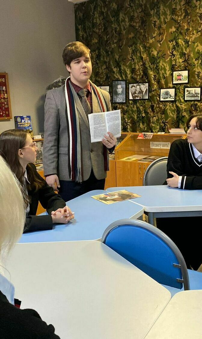 28 февраля в музее гимназии 95 прошла встреча с участником СВО, выпускником нашей гимназии Захарьящевым Андреем Андреевичем. Ученики 6 б класса с интересом слушали Андрея, который рассказал ребятам о своей военной службе, задавали вопросы. В конце мероприятия для Андрея и ребят была проведена обзорная экскурсия по музею.